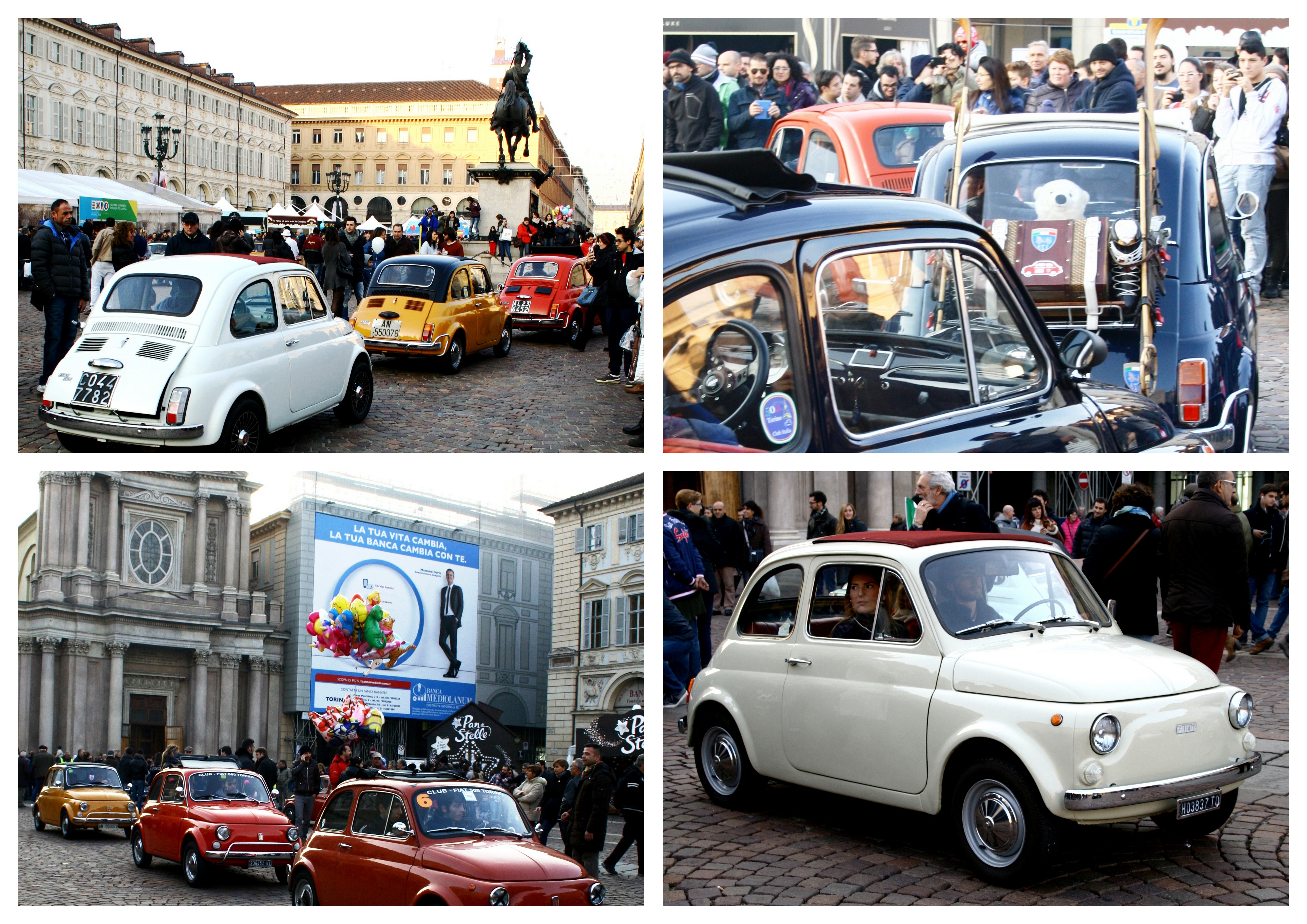 Wracając do targów…to miejsce, w którym możemy nie tylko napić się gorącej czekolady, czy spróbować czekoladowego Kebabu. Jak na obecne czasy przystało każdy wykorzysta okazję do reklamy. Nie zabrakło miejsca nawet dla Apple, który umieścił tzw. „Chocostore” pełen pamiątkowych gadżetów. Na kolejne dni zostały przewidziane miedzy innymi: masaże z czekolady, degustacje z przewodnikiem, prezentacje cukierników itp. Zupełnie przypadkiem trafiłyśmy też na manifestację, której uczestnicy zapełnili Piazza San Carlo starymi Fiatami 500. Rzadko kiedy udaje się spotkać aż tyle samochodów tego modelu na raz, ale w końcu pochodzą one z Turynu…