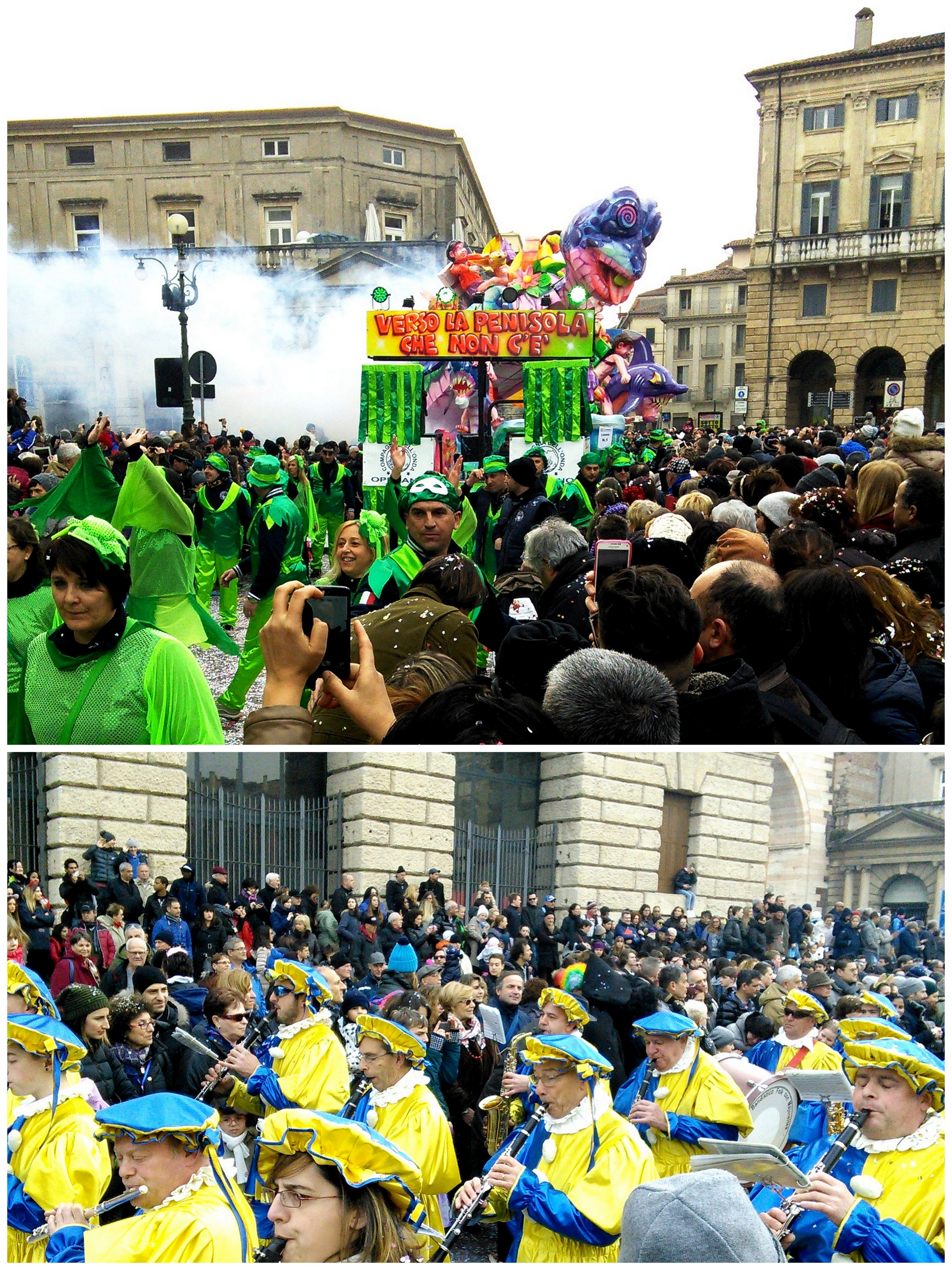 Niby to tylko 115 km, niby sąsiedni region, ale karnawał w Weronie to coś zupełnie innego niż karnawał wenecki. W piątek 13-stego lutego miałam okazje zobaczyć il Venerdi Gnocolar (Gnocchi’s friday, czyli kluskowy piątek). Werona to jedno z niewielu miast, które może pochwalić się starożytnym pochodzeniem karnawału, który opisywany był już w księgach z 700-nego roku. Chyba tak bliskie sąsiedztwo z Wenecją jednak sprawia że mało kto o tym słyszał.
