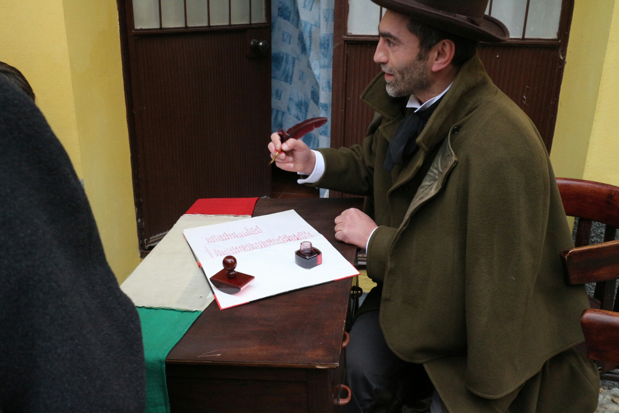 ,,Wycieczkę” po ulicach miasteczka otwierało Cesimento (spis ludności). Elegancki pan, siedzący przy stoliku z kałamarzem, starannie zapisywał nazwisko każdego przybyłego.