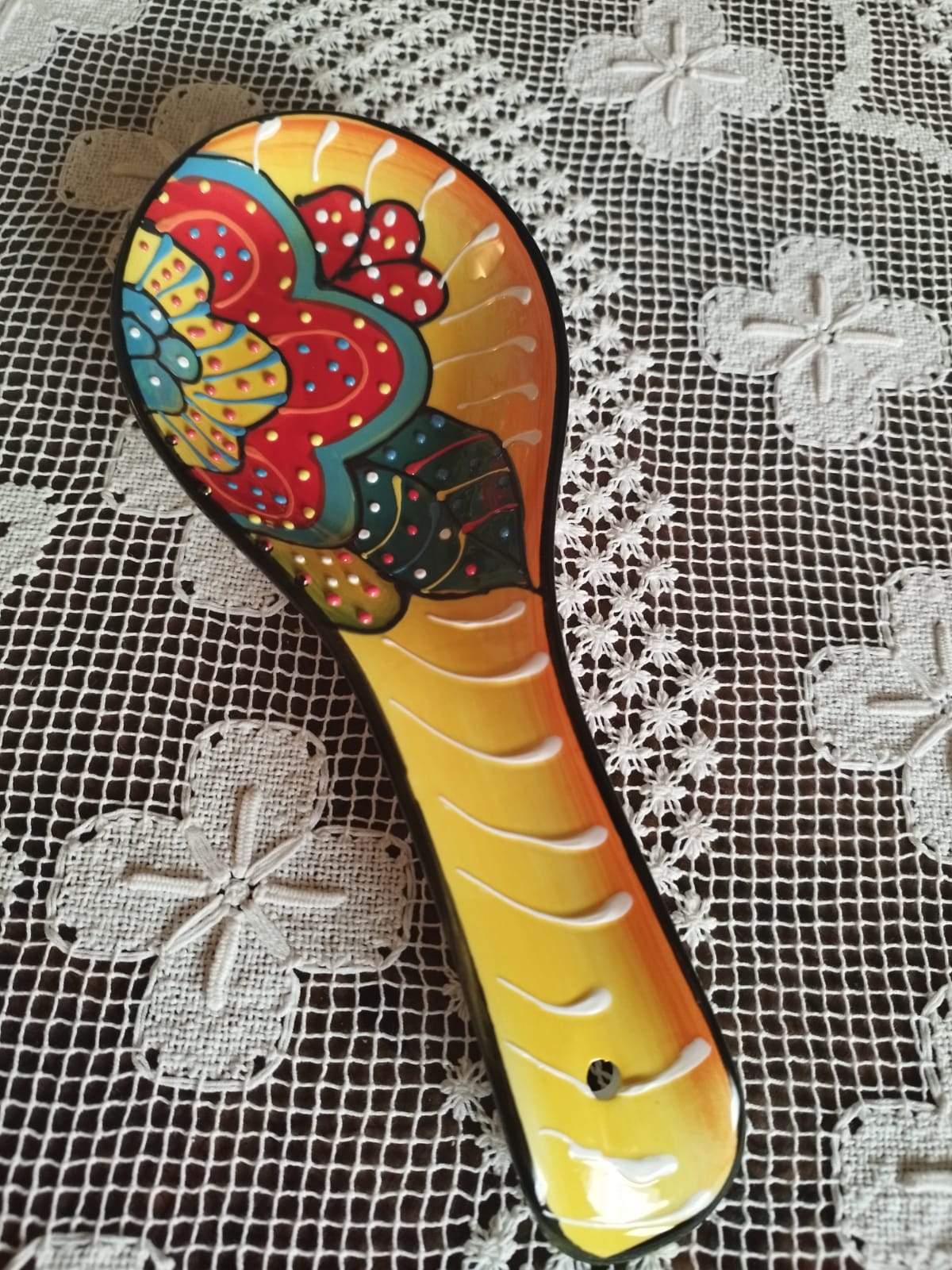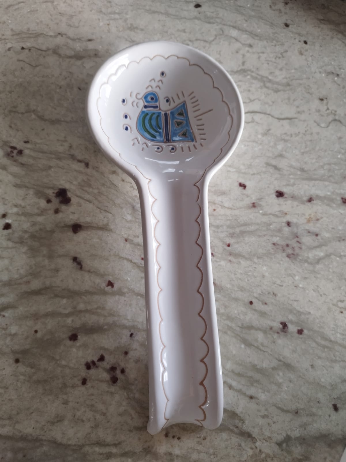1. Poggia cucchiaio to dosłownie oparcie dla łyżki, a w praktyce podstawka na chochlę, łopatkę, szczypce, cokolwiek co brudzi się podczas przygotowywania potraw, a potem brudzi nasz blat. I właśnie tu z pomocą przychodzi poggia cucchiaio, na którym możemy spokojnie oprzeć łyżkę bez ryzyka utytłania wszystkiego dookoła.
