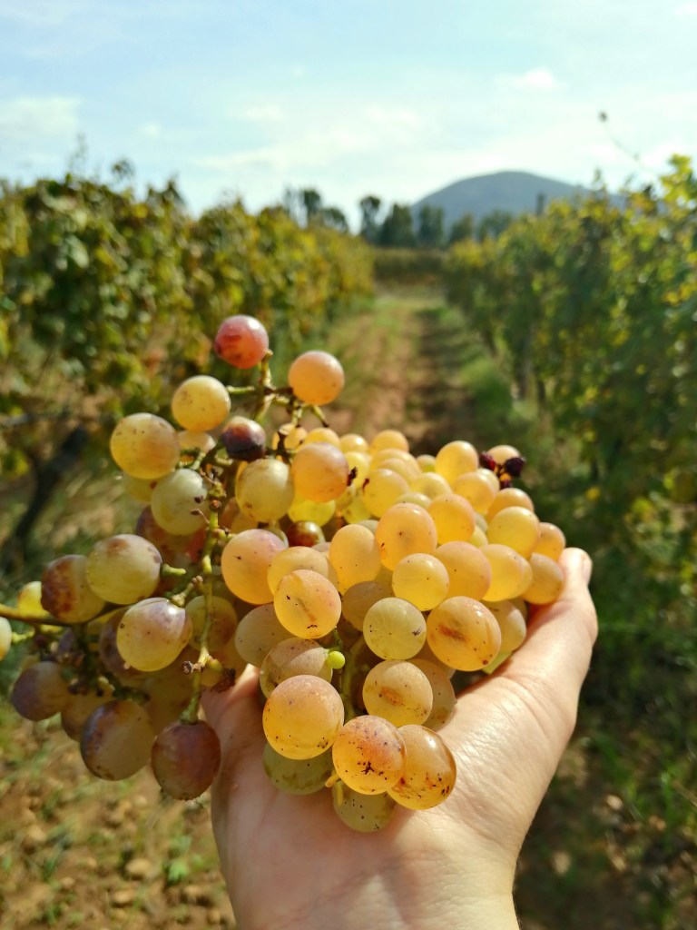 Moje marzenie spełniło się w 2020 roku. W końcu byliśmy na Sardynii w idealnym momencie na zbiór Vermentino. Oczywiście co roku data zbiorów się nieco różni, wszystko zależy od tego jak gorące albo jak suche było lato. Winobranie zazwyczaj jednak przypada na koniec lata, tym razem był to 29 września. Dzień wcześniej zadzwonił do nas dziadek, aby dać znać, że wybiera się do sąsiada po winogrona i jak chcemy to możemy dołączyć. Dlaczego do sąsiada? Nie każdy ma wystarczające ilości hektarów albo po prostu nie ma warunków do uprawiania konkretnego szczepu. U dziadka w ogrodzie znajdziemy trochę czerwonych i trochę białych winogron, ale to raczej uva da tavola (winogrona stołowe), czyli takie do zjedzenia na deser po obiedzie. Mimo braku ,,surowca” robi wino co roku, na własny użytek oczywiście. Umawia się z jednym z sąsiadów lub znajomych, którzy dzwonią do niego jak winogrona są dojrzałe i zazwyczaj w jeden dzień udaje mu się zebrać tyle, aby wyprodukować około 400 litrów wina (tyle mniej więcej starcza na rok). Zasady są proste: przyjeżdżasz, zbierasz winogrona sam, płacisz za każdy zebrany kilogram. Ulubionym winem dziadka, które robi od lat, jest Vermentino.